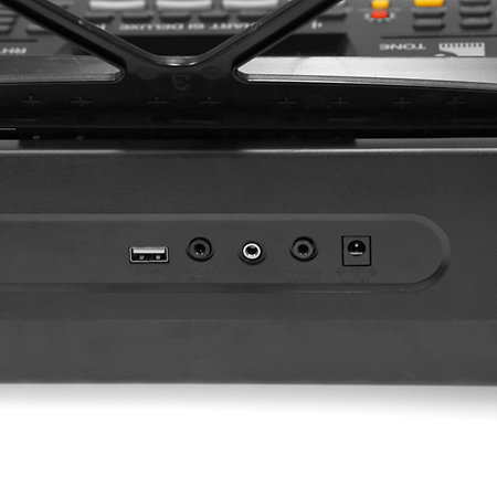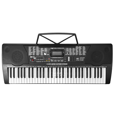 Tastatură cu 61 de taste cu LED-uri încorporate 255 de sunete cu sunet fantastic de pian, 255 de ritmuri cu funcție de aranjament, acompaniament automat 50 de melodii de redat cu acompaniament USB MP3 player și între microfon karaoke, 2x difuzoare încorporate Ieșire maximă de 6,3W Ieșire căști Jack 3 , 5 mm Mufă între linii 3,5 mm Adaptor de rețea 12 V 500 mA inclus , stativul X nu este inclus. Dimensiuni: 935 x 340 x 110 mm Greutate netă: 3,4 kg